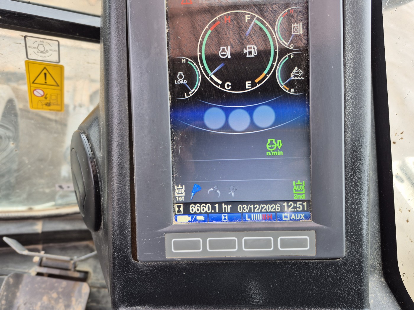 Kabina: vzduchem odpružená a vyhřívaná sedačka, klimatizace, 7" barevný multifunkční displej a zadní kamera