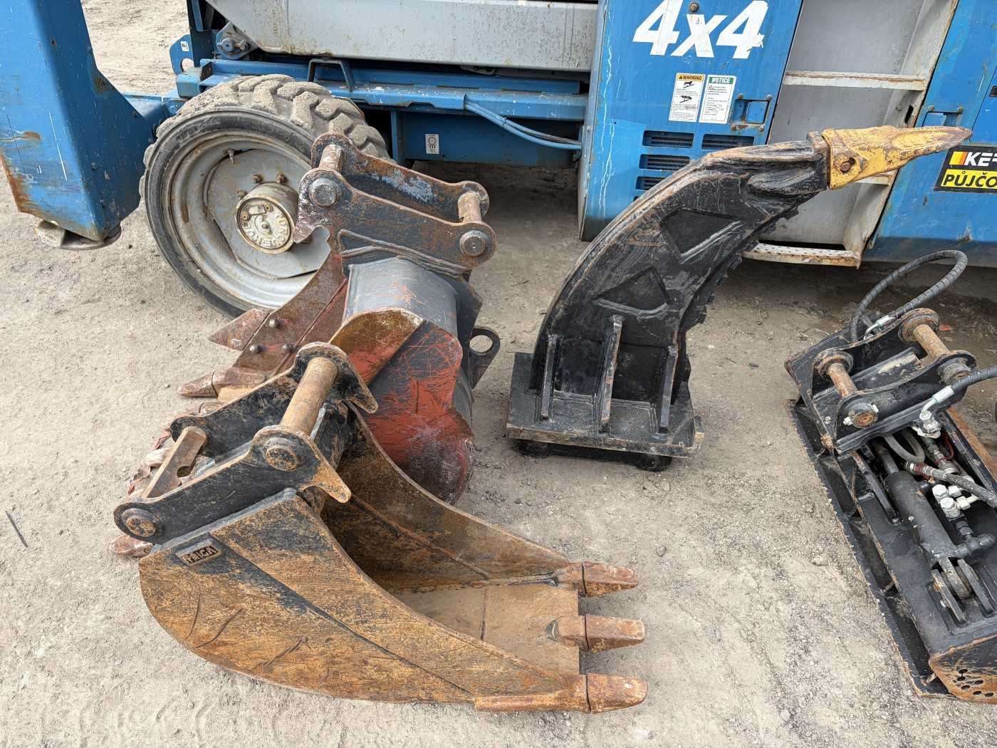 Stroj je na prodej včetně 30cm a 60cm podkopových lžic, naklápěcí svahovky, rozrývacího trnu, 60cm prosévací lžíce a mechanického upínače Lehnhoff.