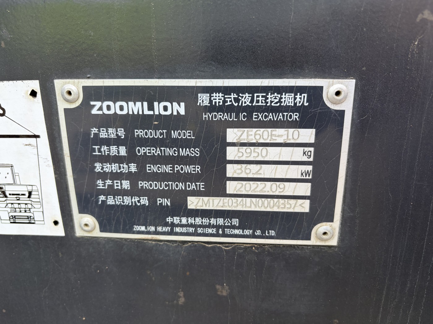 Nabízíme k prodeji použité pásové rypadlo Zoomlion ZE60E-10